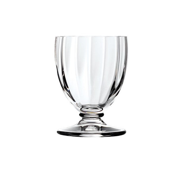Il servizio di calici in cristallo ha un effetto a coste che ne valorizza la luminosità.