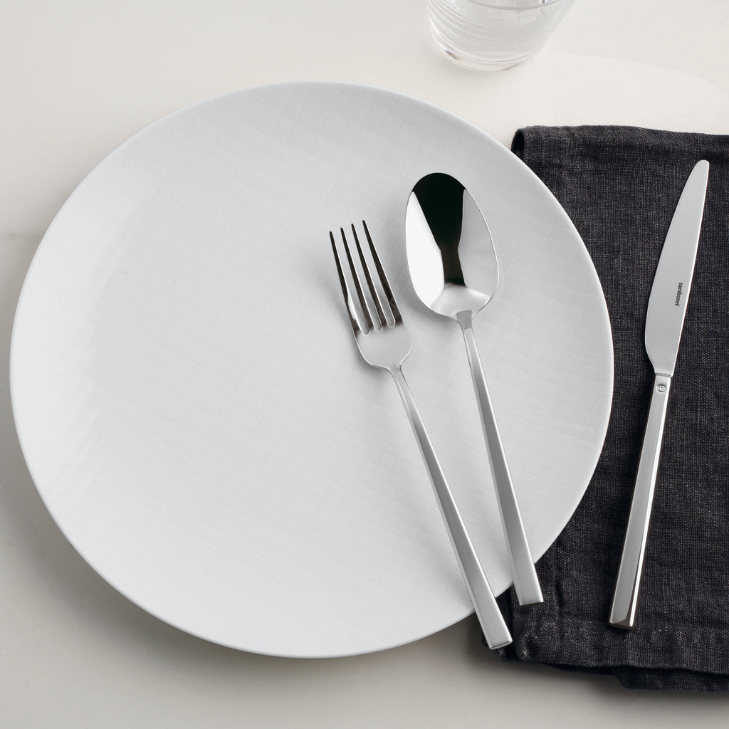 Le nuove posate Rock in acciaio di Sambonet sono estremamente flessibili ma al tempo stesso aggiungono carattere e grinta alla tavola. Le linee squadrate e l’elevato spessore dell’acciaio inox ne fanno una collezione funzionale e contemporanea.