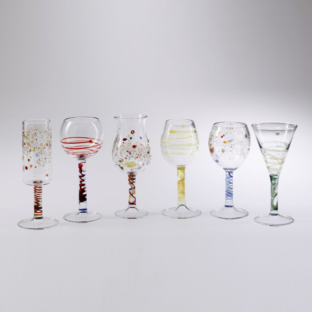 Set composto da 6 bicchierini per amaro uno diverso dall'altro.