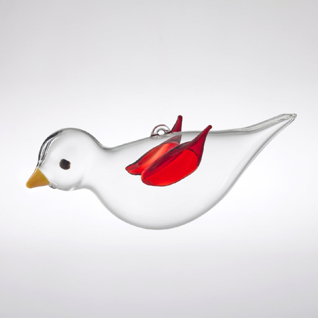 Uccellino in vetro borosilicato con le ali di colore Rosso