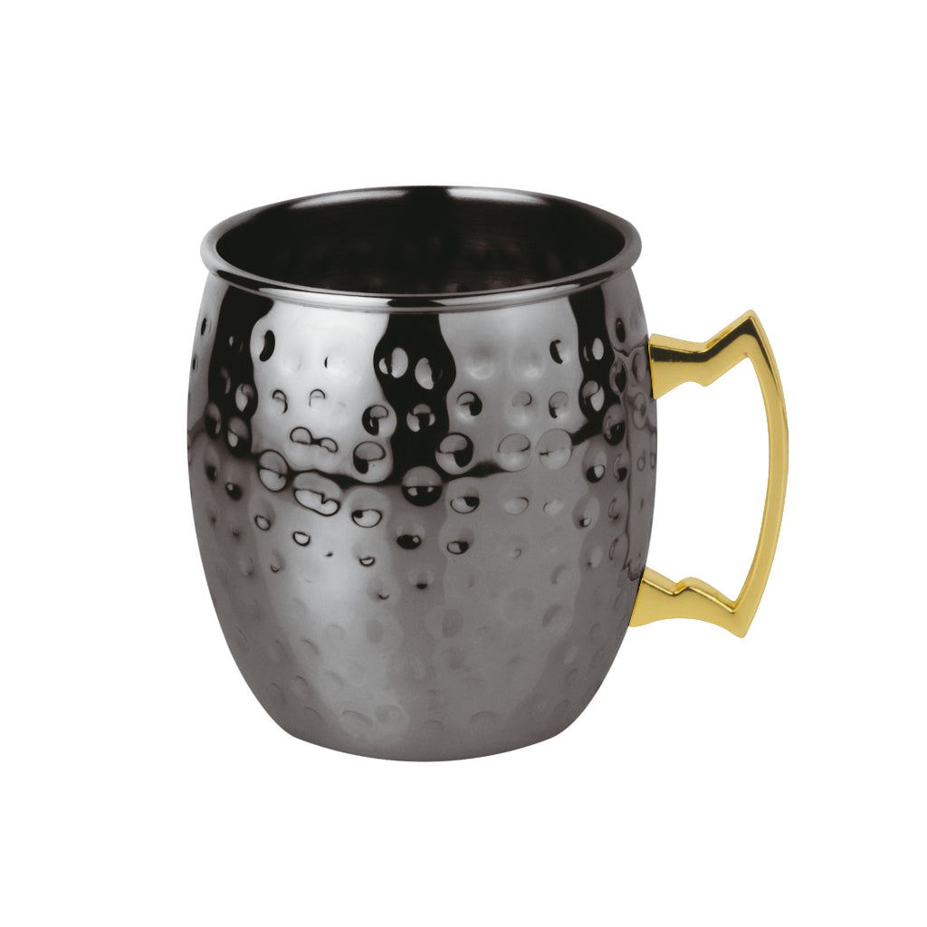 La "Tazza Moscow Mule" è un bicchiere Cocktail in acciaio con effetto nero battuto per dare un tocco originale ai tuoi Long Drink.